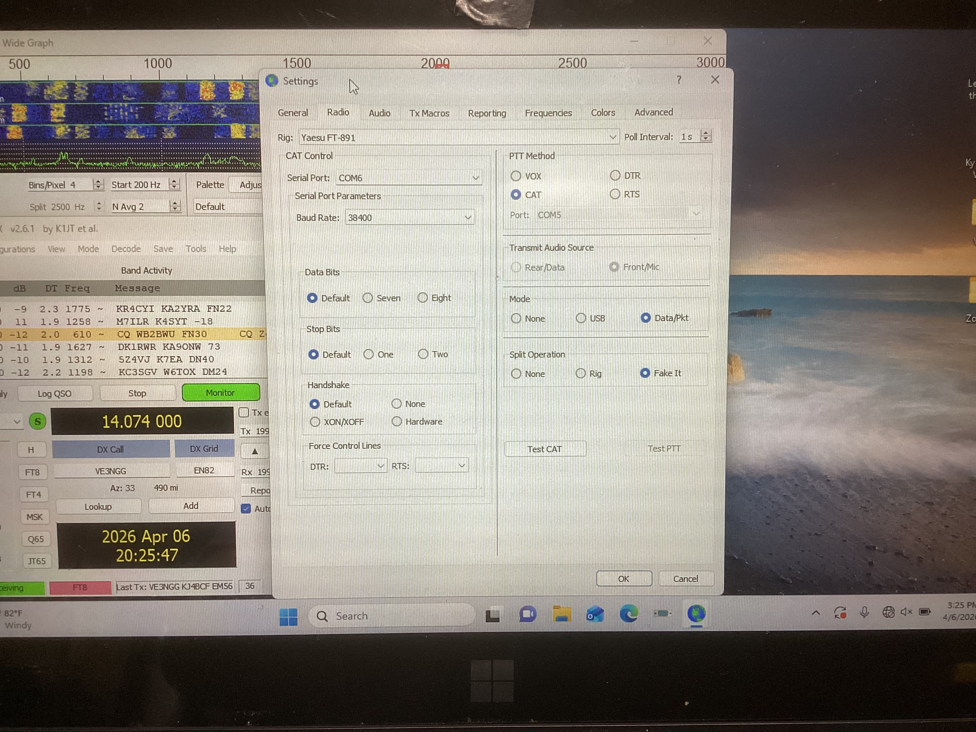 - see if radio holds transmit as expected while using PTT test or tune feature in WSJT-X
