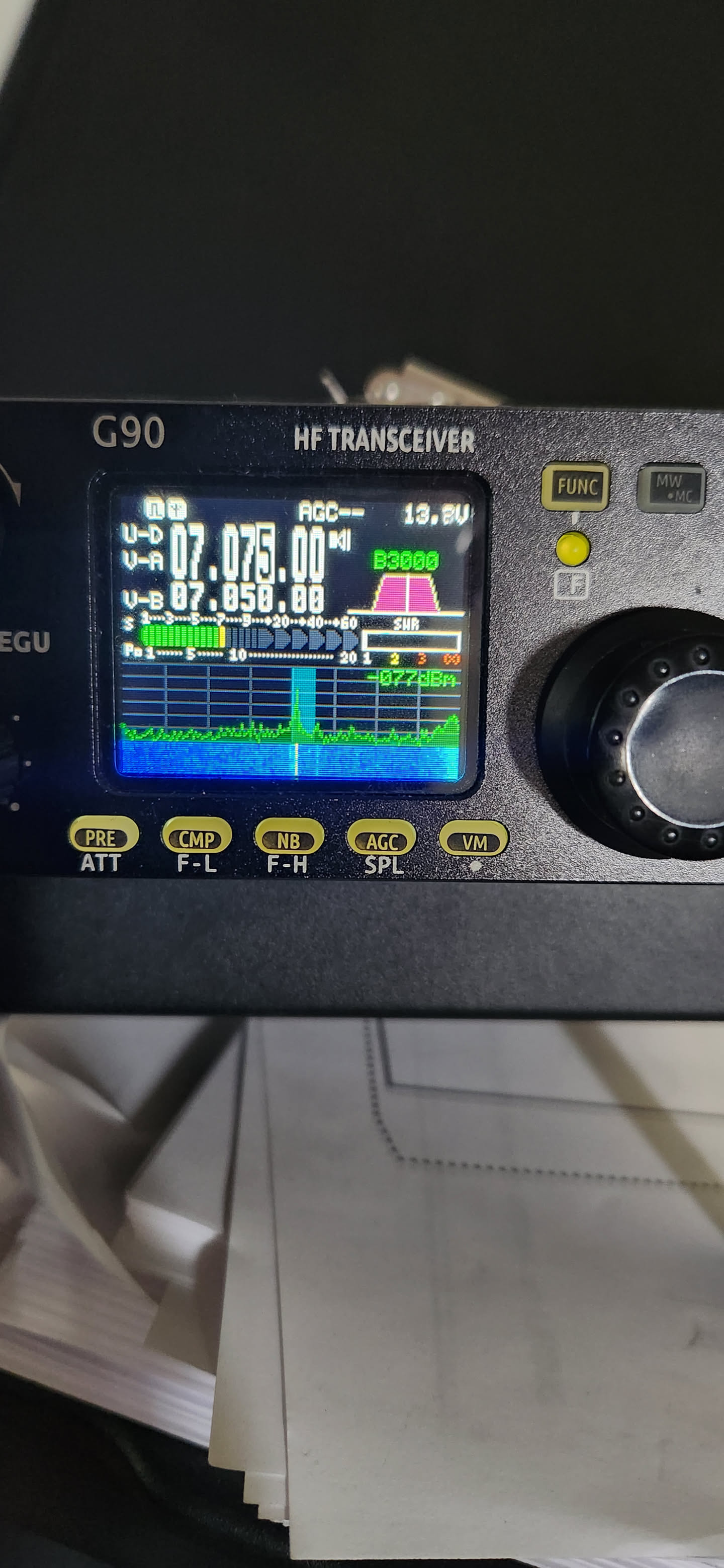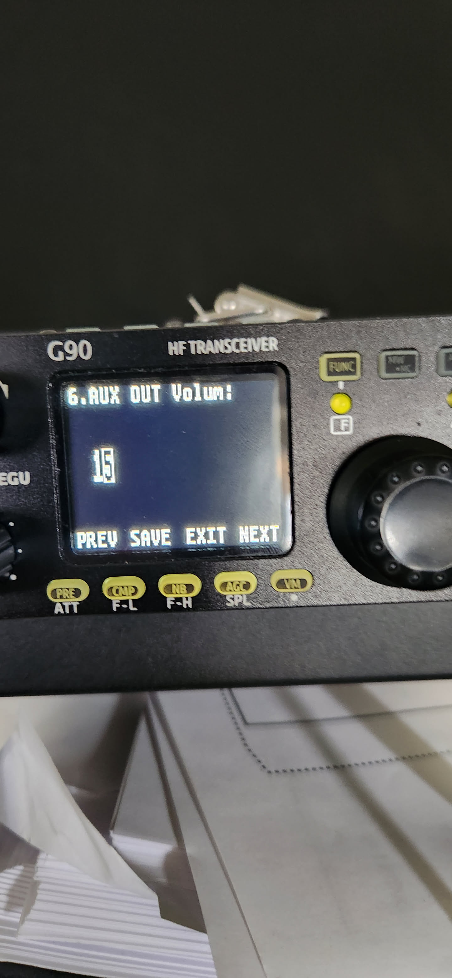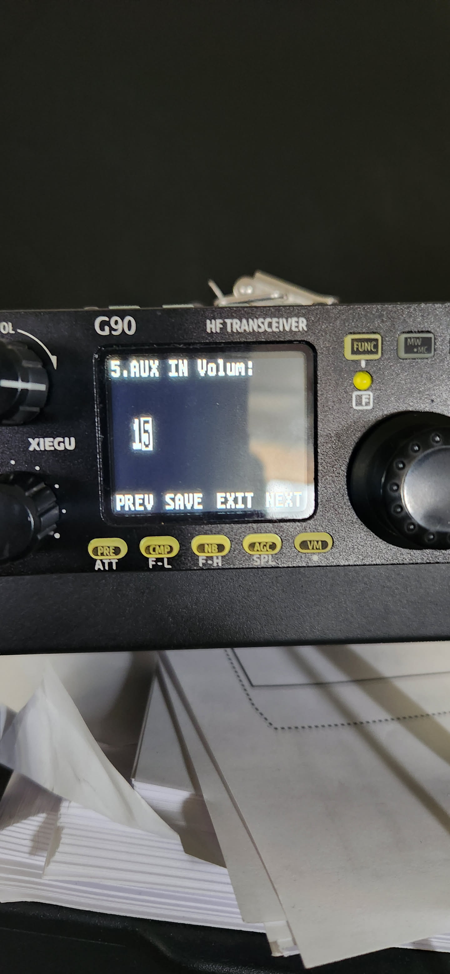 in the g90 menu (on the radio itself), you can check the AUX input level