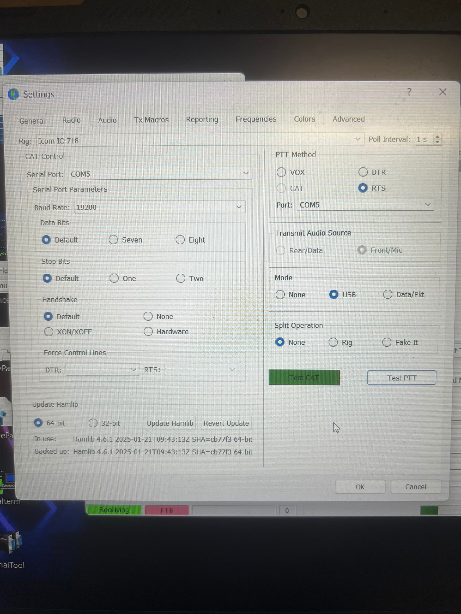 I’m using wsjt-X and I’ve tried all of the available options for Ptt, silly question but are the cat control and Ptt ports meant to both be set to the same when using the digirig and the silicone labs driver?