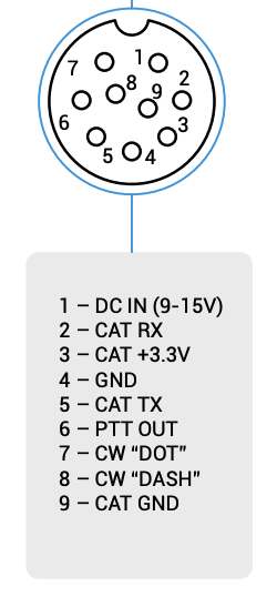 The MP version of the radio likely reuses the design from original TX-500 where the serial lines of the CAT port are optically isolated and require external source of 3.3V to power the isolator circuitry. The fact that Pin #3 - GAT +3.3V is present in new pinout is another piece of evidence for that.